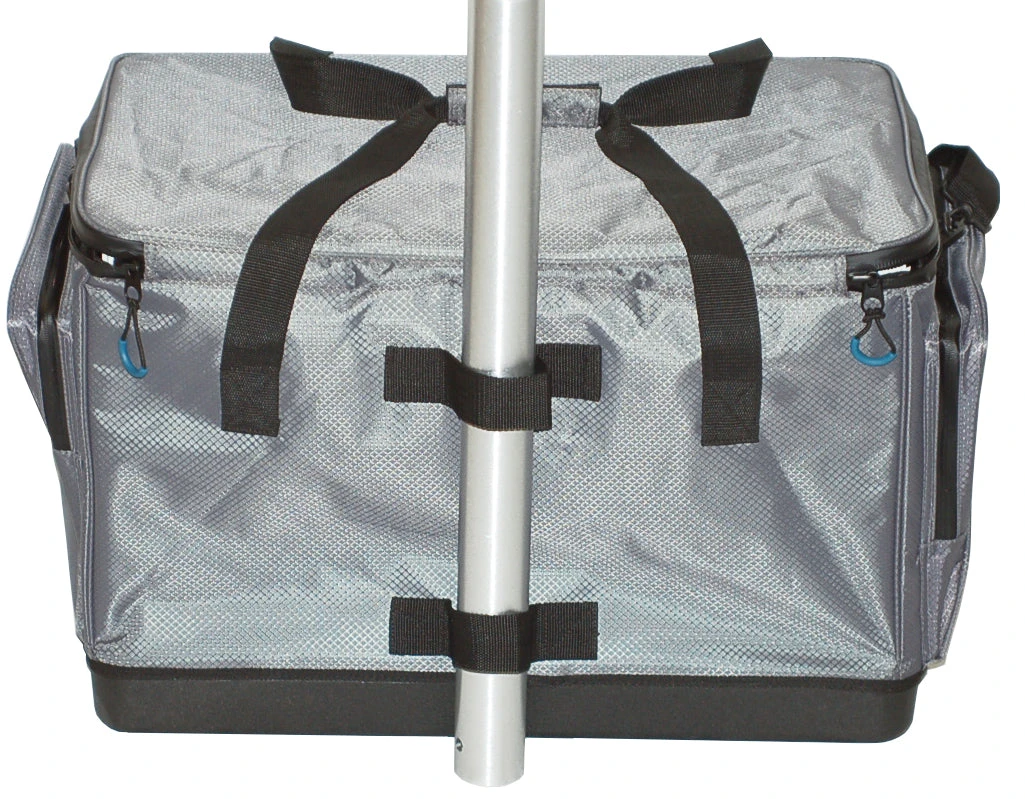 Two “seat pole” straps are featured vertically on the back of the box. This allows for the box to be securely stored underneath your upper casting platform seats without having to worry about them during high speed travel or inclement weather.