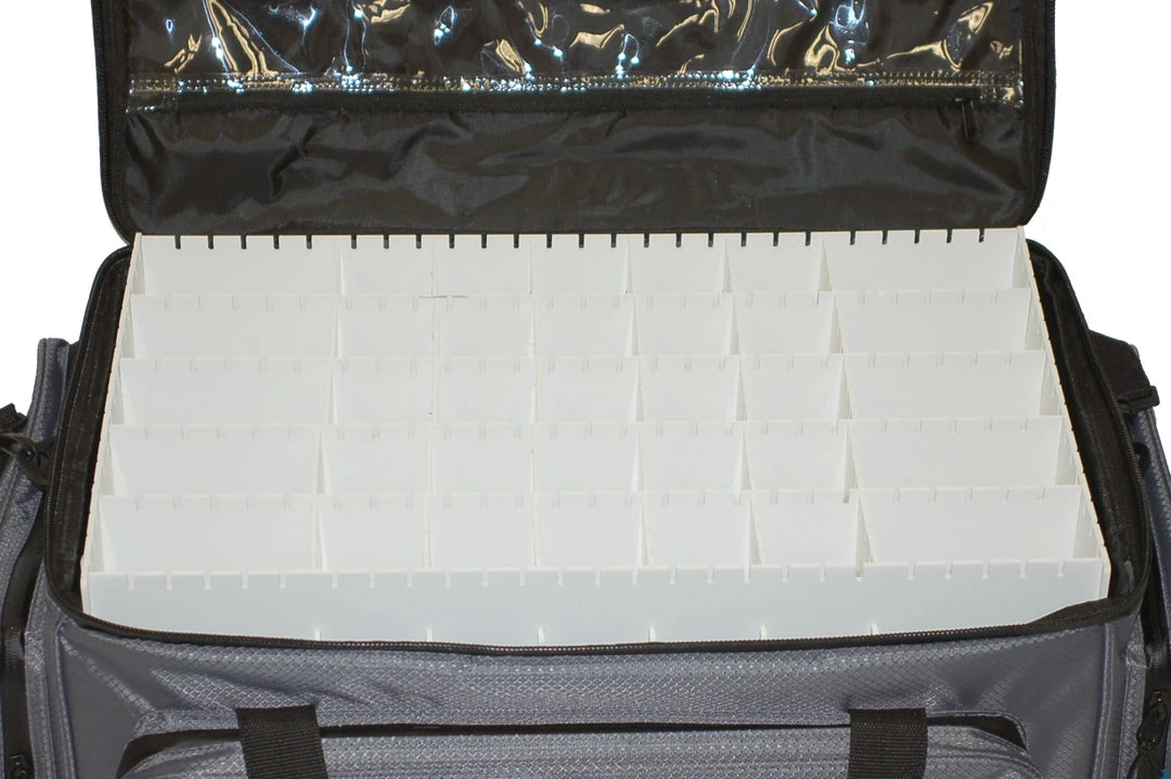 Divider Storage: Features interlocking dividers that make 25 – 2.25″ x 2.25″ x 14.75″ deep slots AND 6 – 2.25″ x 4.25″ slots for your oversized and big billed lips. Slops located along the top edges to lock hooks in place.