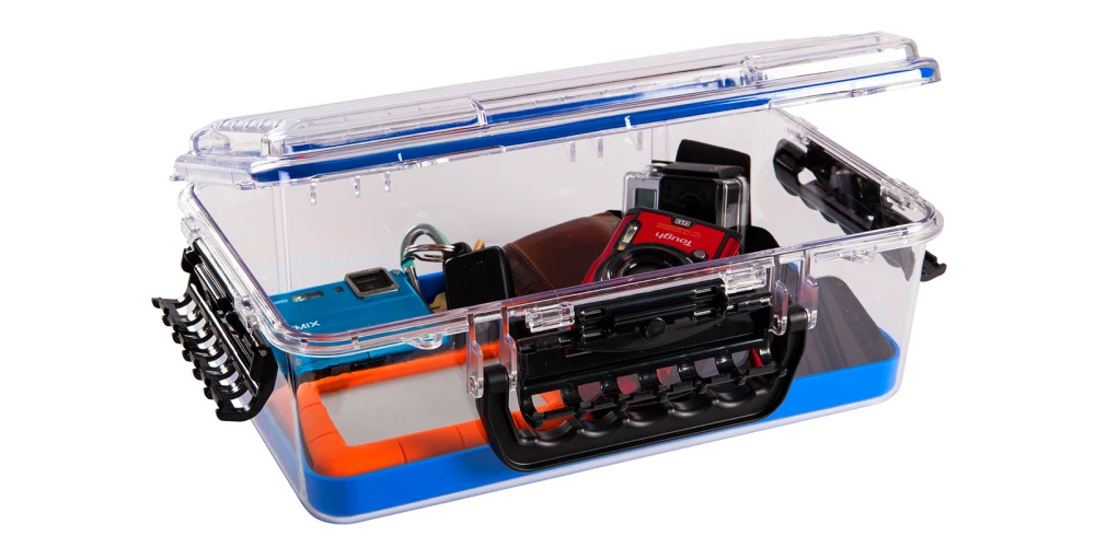 Plano’s Guide Seriesâ„¢ waterproof cases are the best protection on the water. Cam-action latches and a Dri-Loc® O-ring seal provide an airtight, waterproof environment so your valuables can travel with you worry-free. Even if they go overboard, contents stay safe in one meter of water for up to 30 minutes. The largest of the Guide Series waterproof line, the 3700 size can hold bulkier items like camera lenses, first aid kits, cell phones, wallets and more.