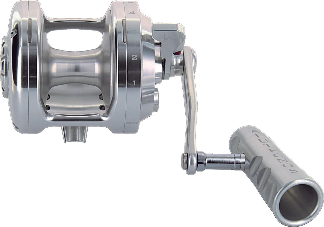 Alutecnos Albacore Gorilla series reels are small, powerful, elegant and immediately recognizable. These reels feature a multi-disc drag system that can be set at over 40 lbs on some models. Guaranteed free spool, and optimized gear ratios work perfectly with these reels to give them very high fish-fighting power. These reels were made for extreme deep-jigging purposes, but the smaller sizes can be used for inshore fishing as well.Â