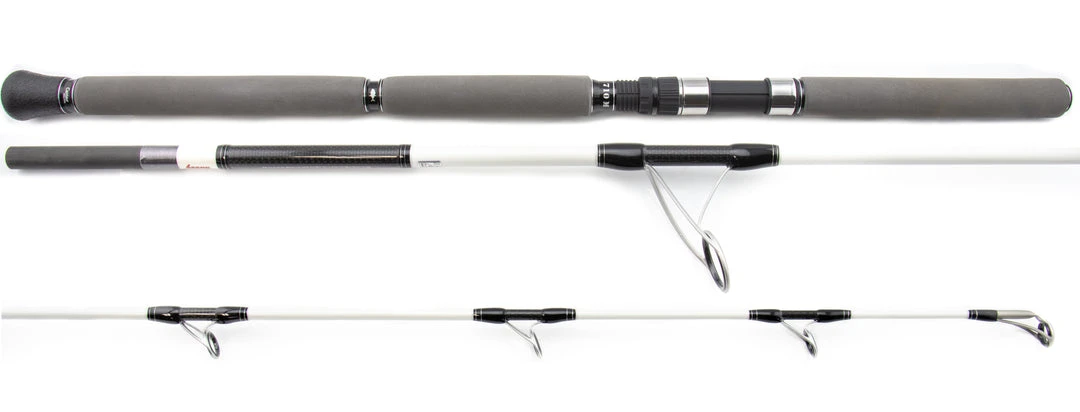 The Centaur Combat Arm Popping Rod is the perfect weapon for casting plugs to large, hard fighting pelagics like Tuna and Giant Trevally. These rods are built on extremely strong and light weight Toray Carbon blanks. The use of Fuji K-Frame Alconite guides assures low friction for casting, and durability for the use of braided line. The EVA foam grips are ergonomic, and when combined with a non-slip textured reel seat it makes for a rod that is not only powerful, but dextrous. All rods in this series are 2 piece, with a hidden joint at the foregrip.