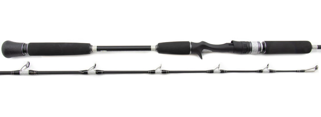 Centaur’s Jigging Rods are true “Japanese style” rods for handling hard fighting species. They are light in weight, and thin in profile, but make no mistake, Tuna, GT’s, Amberjacks, Yellowtail, and many other hard fighting species are all in the wheelhouse of these rods. Toray Carbon blanks make for an extremely strong, yet light weight blank. Combine that with the ergonomic EVA grip configuration, Fuji Alconite guides, and a textured reel seat and you have a serious fish fighting tool. The matte black finish on these rods and weave pattern underwraps make them appealing to the eye too. These are excellent jigging rods, at a very reasonable price.