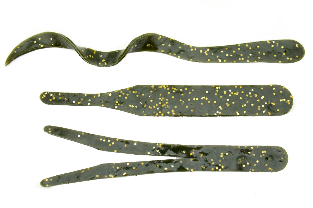Exclusively available at White Water Outfitters. These limited edition sandeel green jig strips are a great color that has been proven to work very well when bass are feeding on sandeels. Tip these on your favorite sandeel colored bucktail, such as the S&S Game Over series, and you’ve got a great match for imitating sandeels! Available in the classic 5-1/4″ “Skinny Tail”, 5″ Split Tail, and 5-1/2″ Eel Tail shapes!