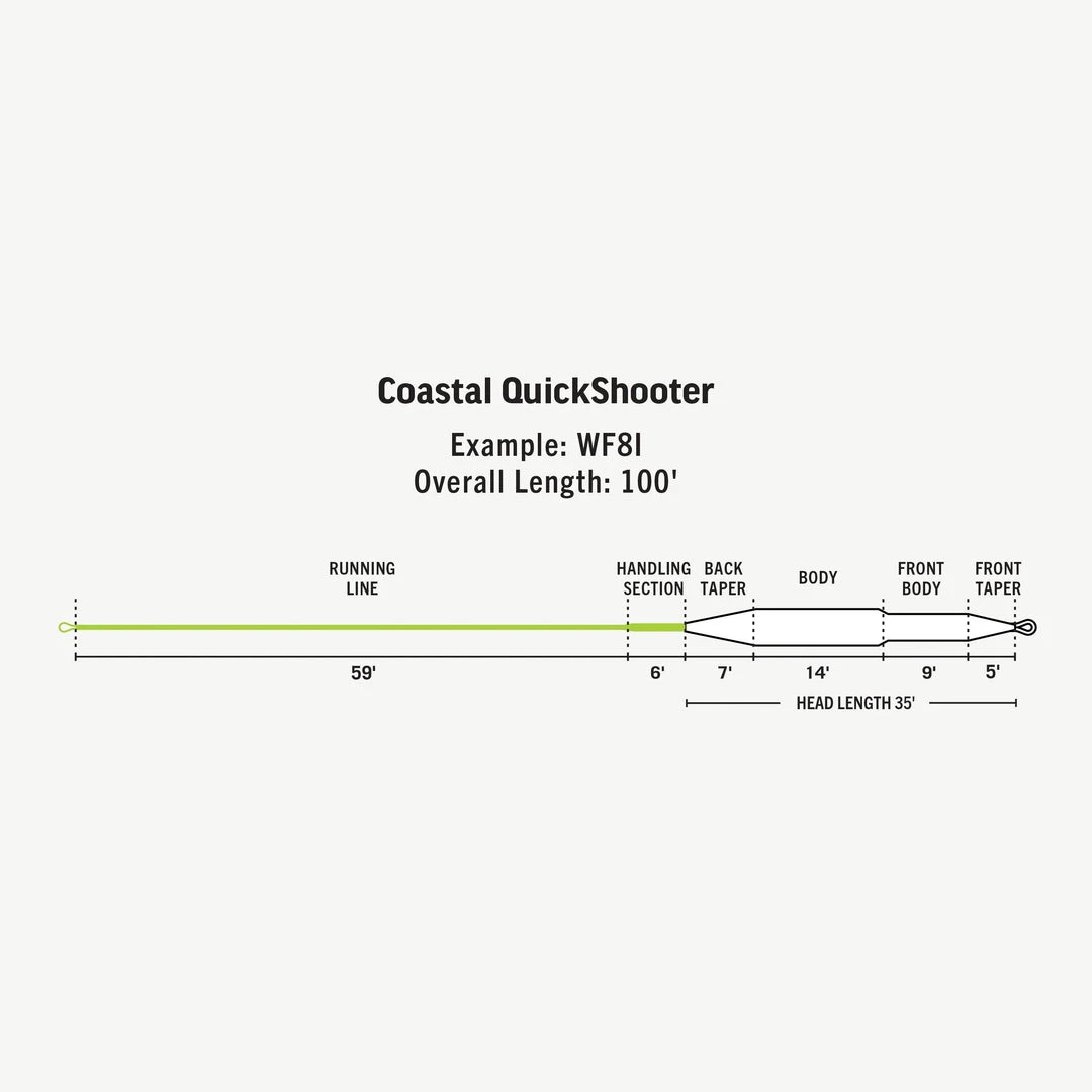 RIO’s Coastal QuickShooter line features a clear intermediate head, and is designed specifically for anglers fly fishing off the coast in cooler conditions. The line features a short front taper that has no problem turning over baitfish and shrimp patterns in typical coastal winds, and has a short, easy casting head to help the rod load at close range.