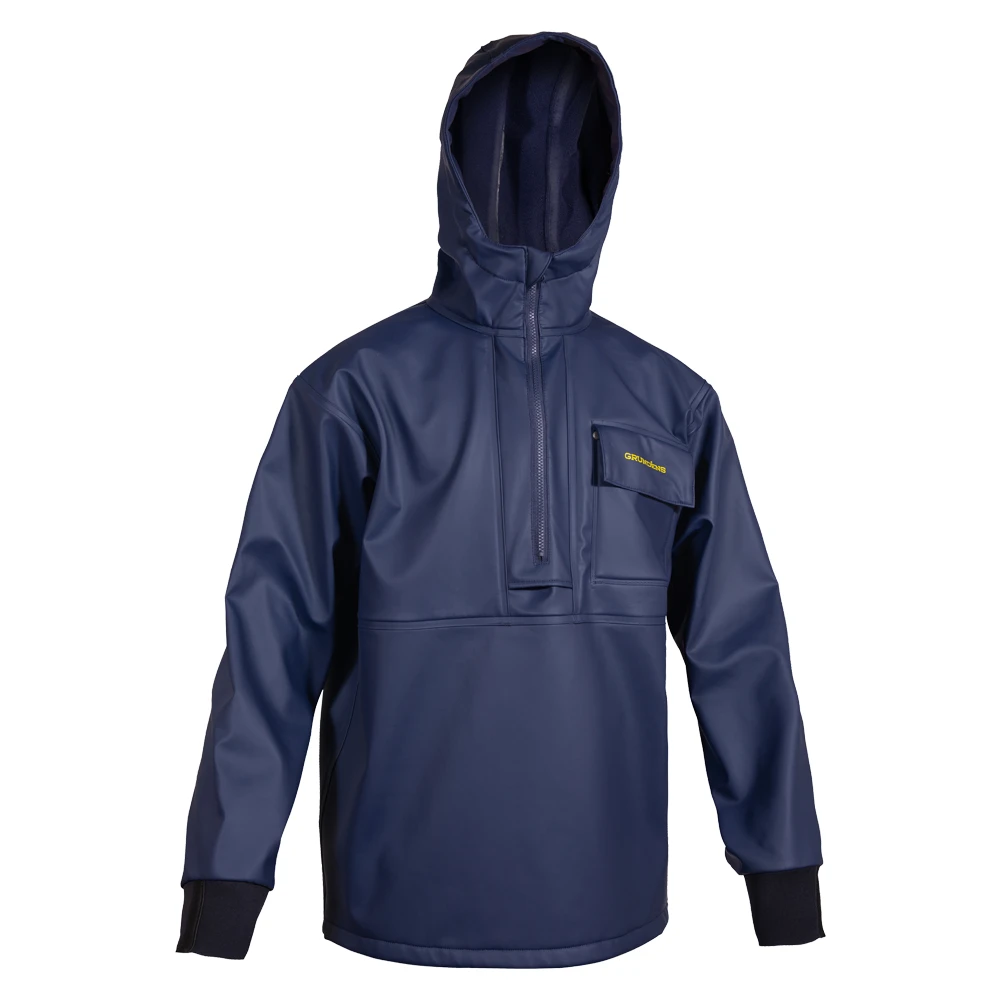 Built with medium-weight polyurethane-coated fleece lined fabric this hooded anorak moves and stretches with you as you work on deck while delivering full protection against rain, wind, and spray. An athletic cut and underarm gussets further enhance comfort and movement.