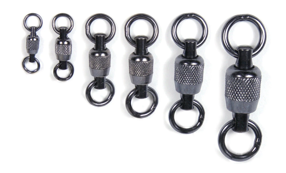 Sea Striker Krok “Billfisher” stainless steel ball bearing swivels and snap swivels feature dual rotation which allows the swivels to rotate at both ends, producing less friction and eliminating line twist. The patented one piece body and all stainless steel construction make Krok swivels some of the strongest ball bearing swivels available, enabling the angler to use smaller swivels without sacrificing strength. Krok swivels feature a nickel black finish and double welded rings which are sure to please inshore and offshore anglers alike. The swivel bodies are constructed with a machine-milled knurled finish that allows for maximum gripability. The ball bearing swivels come in 6 sizes from 110 lb. to 880 lb. test.Â