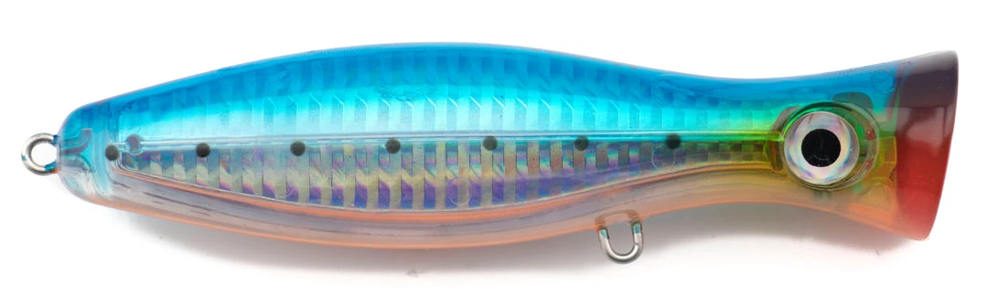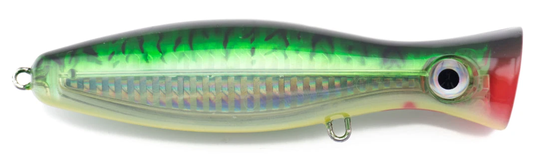 These “Oh Poppa” poppers from Madd Mantis have become extremely sought after in the last several years. They are constructed from very tough plastic, and are thru-wired. The wide, cupped face throws a lot of water when popped, and makes a lot of fish attracting commotion. These poppers dig in very well, and don’t have the tendency to roll out like many others do. The larger size is great for Giant Trevally, and all species of tuna. The medium size is a great inshore/big game crossover. It can be used for striped bass, bluefish, and roosterfish. However, it is also a good size for tuna and GT’s at the same time. The small size is a more inshore specific size, for species like stripers and blues.Â