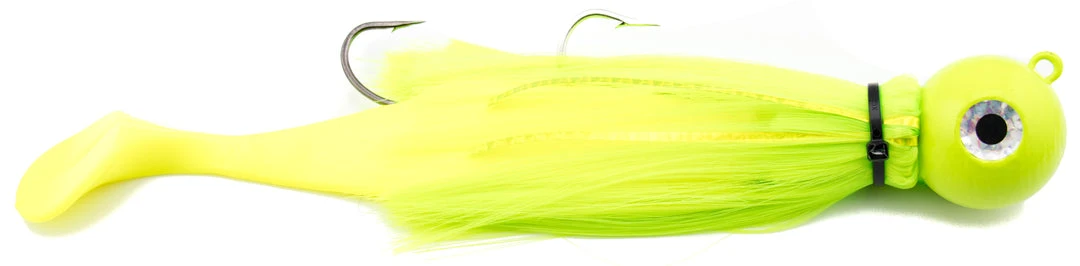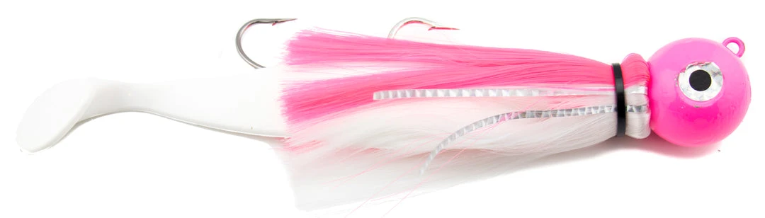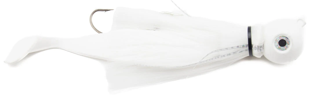 The hottest bass trolling lure to hit the market in years. Designed to target larger bass, in deeper water. Can be trolled on mono, braid, leadcore , or wire depending on the condition. Often used in tandem or combined with a plug, spoon or other via a 3-way swivel rig. Comes standard with a pair of ultra strong mustad hooks and 9″ shad body (except 2 and 4 oz that are single hooks and 6″ shad) and reflective tape down the lateral line for a small amount of added flash.Â
