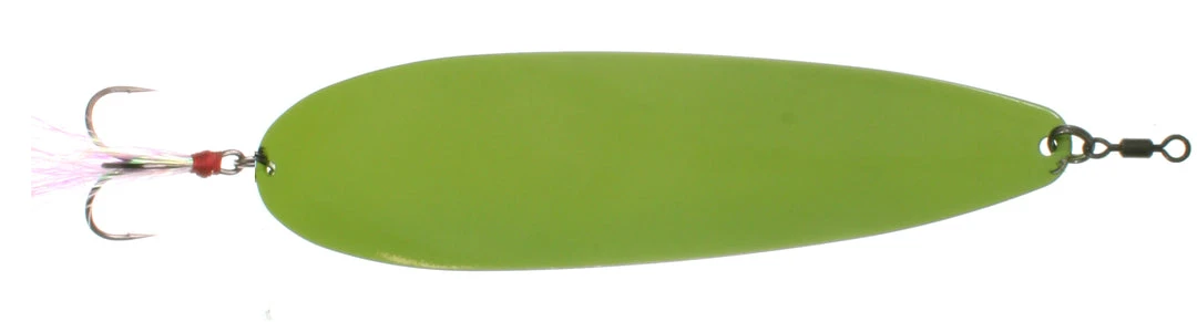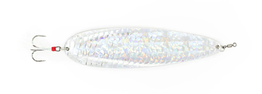 The Original Ben Parker Magnum Spoon is a sure winner. The flutter spoon is a hot new lure for jigging striped bass when feeding on bunker (menhaden), shad, herring, and other wide-profile baits. This is very popular in Raritan Bay, as well as many other areas in the Northeast big stripers and bluefish. We sell these with the “Saltwater Heavy Duty” rigging. This includes a 5/0 VMC treble, size 8 Owner Hyper Wire split rings, and a size 2 Owner swivel. These are rigged and ready for stripers. The VMC treble is plain, there is NO flashabou tied on the hook.