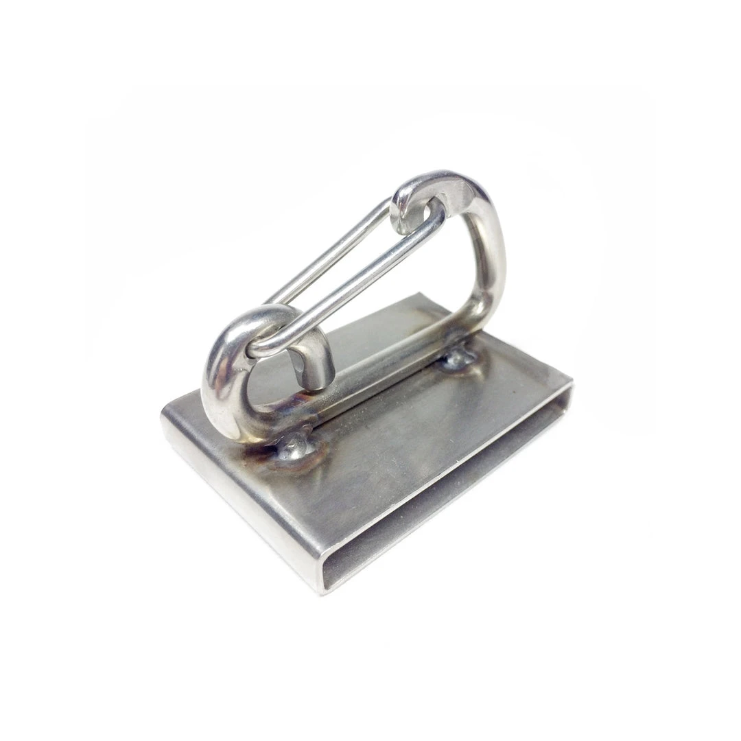 - Wire gated 1/4 inch harness clip is welded with SS rod in two places