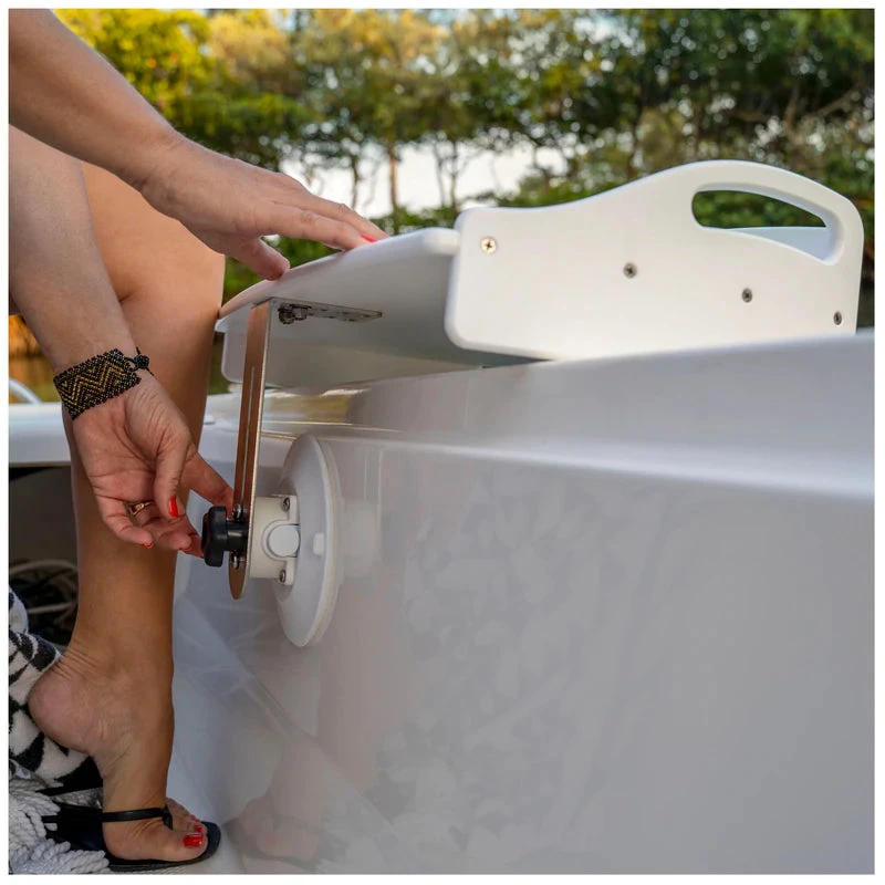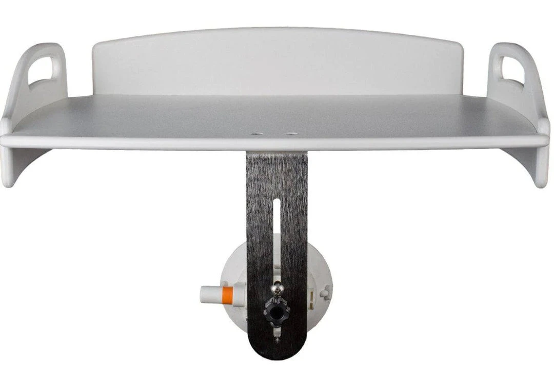 This table is the same as our regular Large Table, but with a different mount – instead of attaching the SeaSucker directly to your gunwale, this table has an “L” bracket that allows you to mount the included 6” SeaSucker to the inside wall in a vertical position. Use this custom-designed table to cut bait and rig lines, to filet your catch or to serve it up to your guests. Made of .5″ white Starboard, this table is incredibly sturdy. Open corners allow you to easily dispose of waste overboard and knife slots in the back corners provide convenient and safe storage. Work surface is approximately 22″ x 12″.