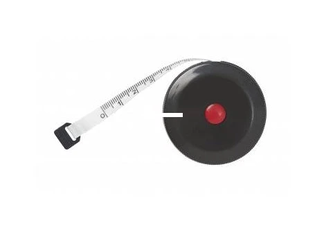 Deluxe Tape Measure from Angler’s Choice. Just hit the button in the center and it automatically retracts! Great for measuring lengths of fish.