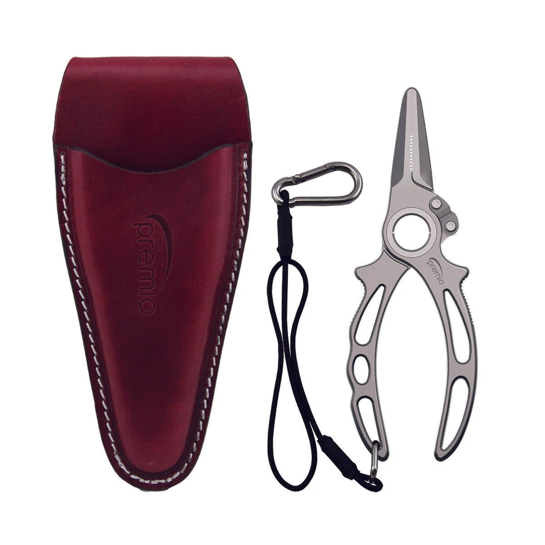 The absolute next level in fishing tools! We took a quantum leap forward and made a pair of extremely high-quality pliers that every angler would not only want but most importantly, be able to afford. Our premio level titanium pliers are just that, made of 100% machined titanium with a sleek matte finish and fitted with our exclusive Super Halo Hinge. These pliers also feature replaceable Cobalt-Titanium side cutters which are suitable for braided line, fluorocarbon, monofilament and even light wire. The entire line of premio pliers comes in very exclusive boxed packaging and they feature a 304 stainless-steel D ring, an elastic cord (non-coiled) lanyard and a belt-loop sheath made from the highest-grade leather. These pliers are extremely lightweight, so light than you will barely notice them on your hip for your lifetime of fishing excursions. All of the features above, backed with a full Lifetime Warranty makes these, “probably the best fishing pliers in the world.”