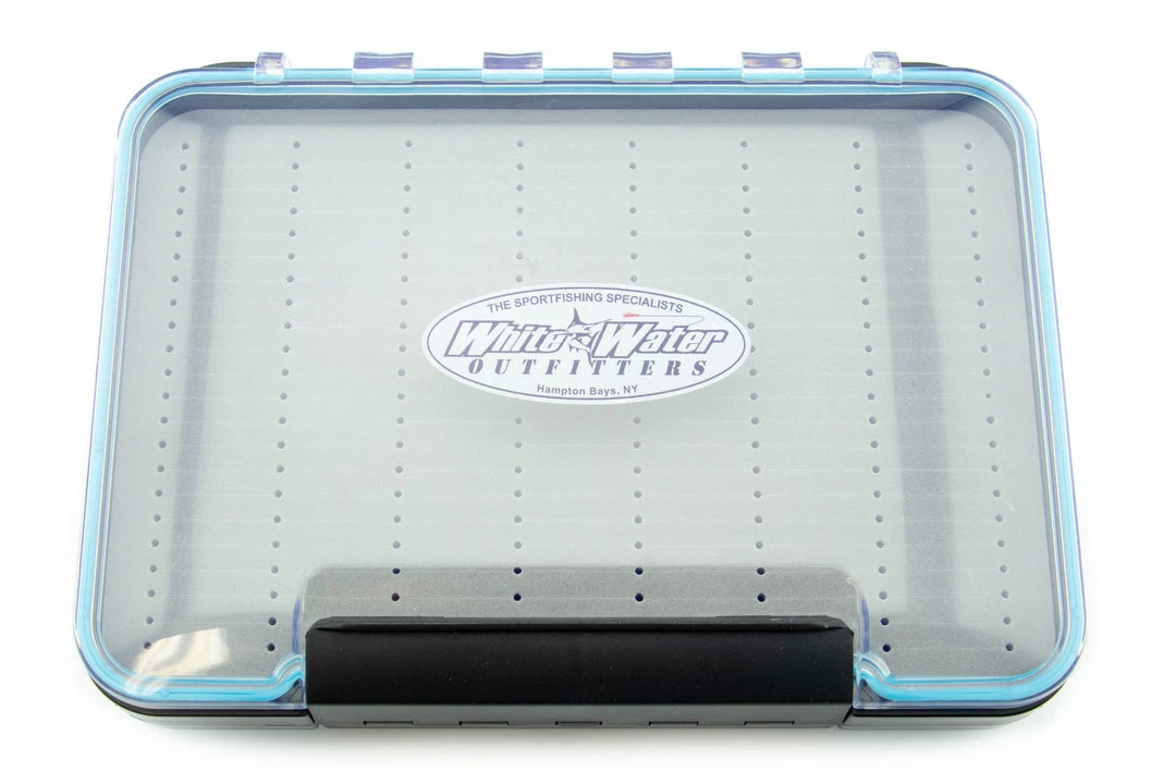 This special purpose fly box is meant to hold saltwater flies and large streamers. These boxes are relatively slim and compact, and they have large slotted foam inserts to hold saltwater flies and streamers. The Large size is a great boat/backpack size, and the Medium can fit into many sling/hip packs, but also is a great size to keep on the boat. With the waterproof gaskets, they won’t get wet, and the strong plastic and latches can take the abuse of being bounced around.