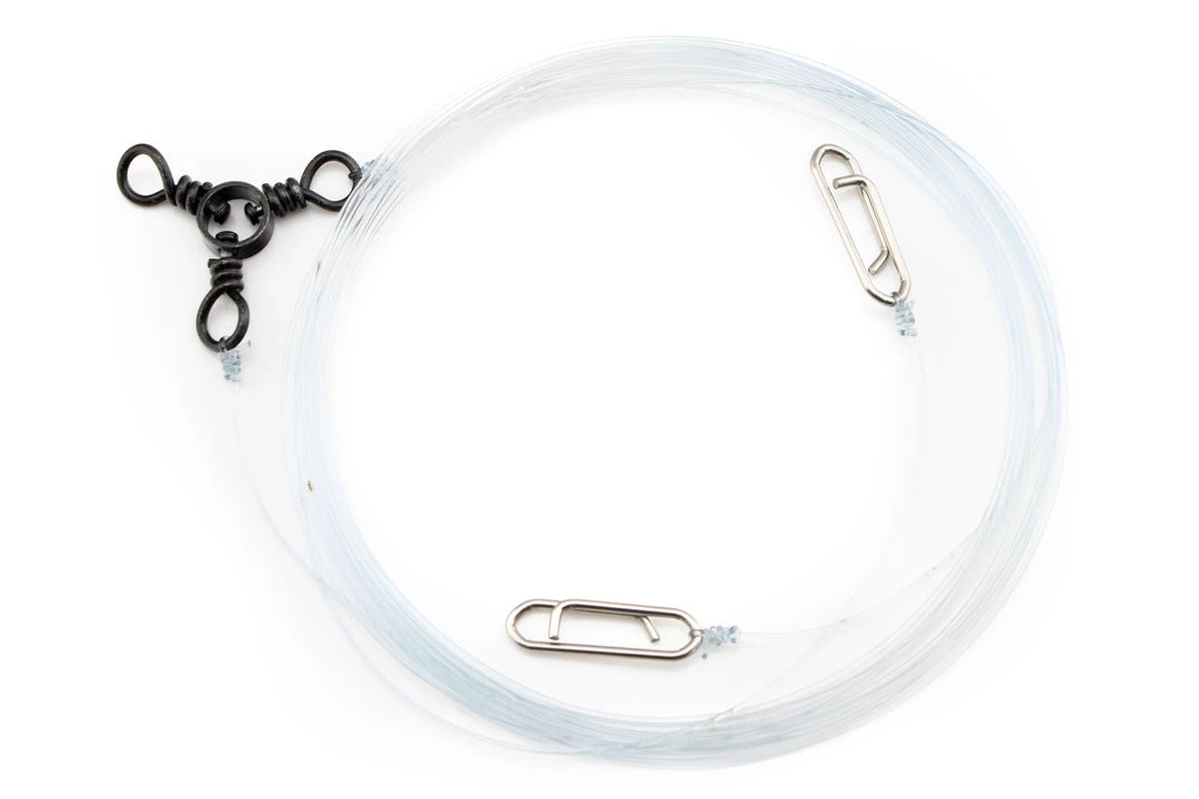 Nobody beats the quality of our custom rigs, hand tied right here by professional fishermen, with the right configuration to catch your target species. These Mojo Rigs are meant for striped bass trolling. These are tied on 80lb. Momoi monofilament line, with a heavy 3 way swivel, and Tactical Anglers clips at the terminal ends to attach your lures. The “bottom” lead is 5 feet long, and the top lead is 10 feet long. Normally, we attach the heavy mojo on the bottom, and the lighter one on the longer top lead. Some use spoons in place of the top mojo as well which is also an effective technique. We sell these rigs packaged indivdually.