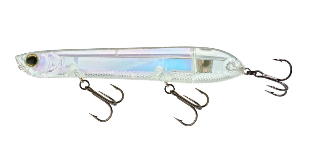 A top-of-the-line, topwater, “Walk the Dog” lure should always be in your fish catching line-up. The Yo-Zuri 3DB Pencil Popper features the patented 3D Internal Prism that reflects light in all directions. The large single internal cadence rattle gives this lure exceptional fish attracting sound during the side to side walking action, plus the ability to cast long distances even into a strong wind. Put it all together and you have a high-quality, freshwater Japanese hard bait at an extraordinary price point!